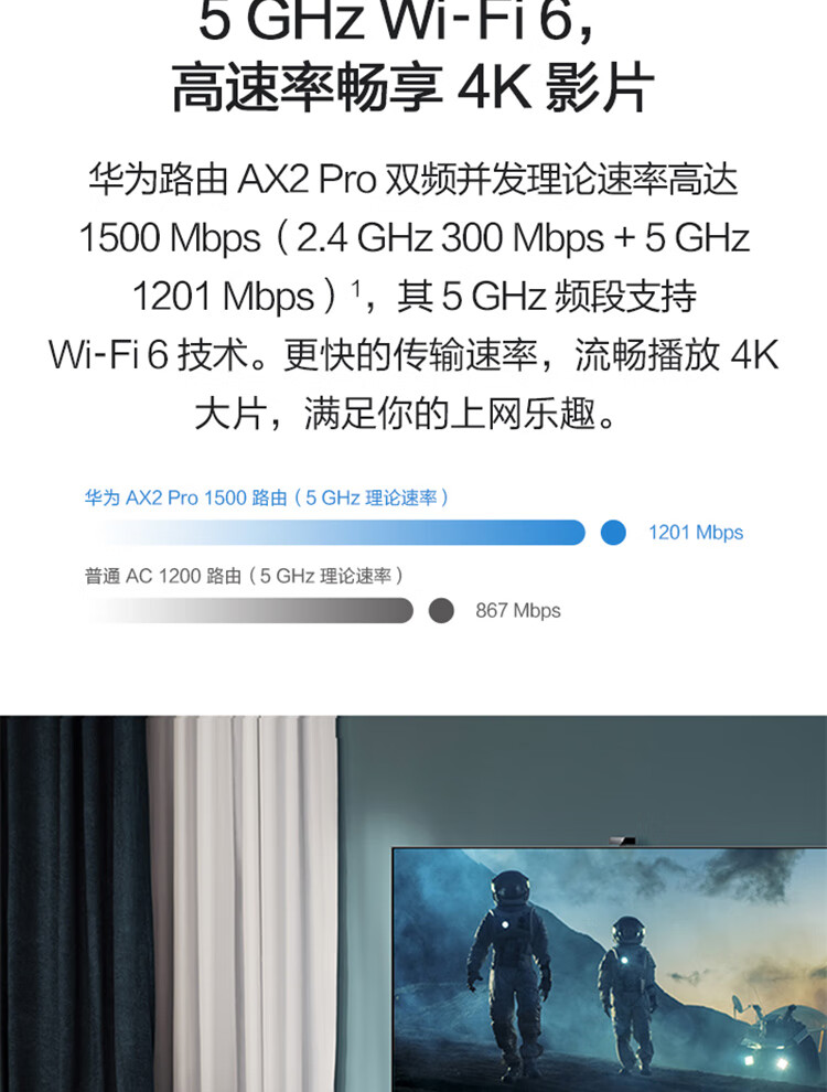 华为路由AX2 Pro 智能加速 双频智能切换 Wi-Fi6双千兆无线路由器 5G双频 畅享4K影片 儿童上网保护